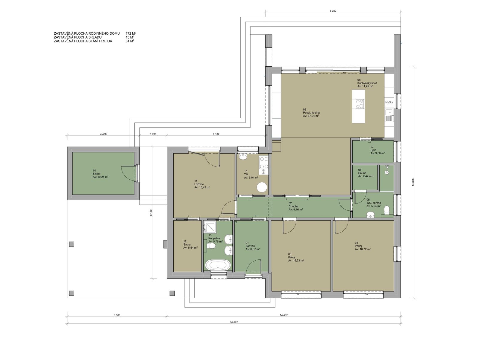Zastavěná plocha: 172m2