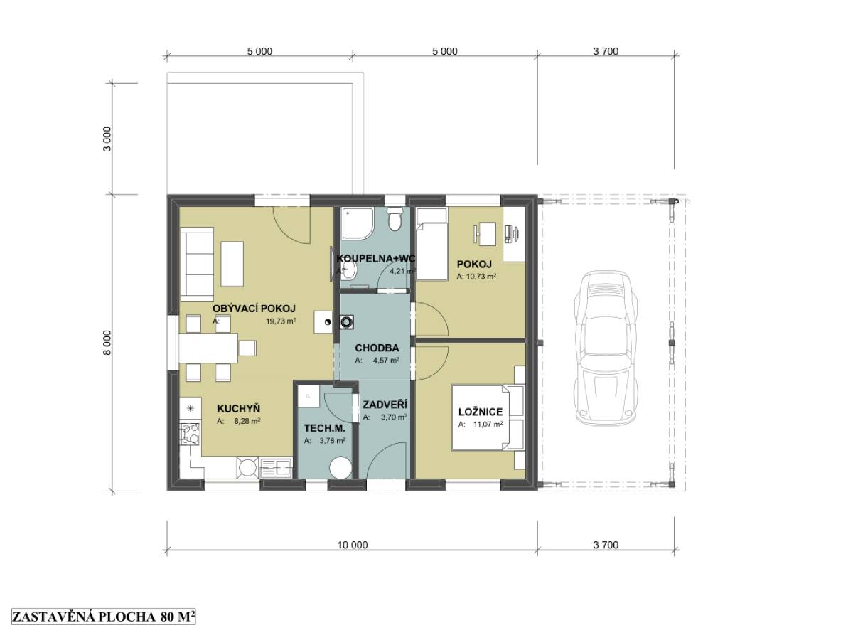 Cena za stavbu domu na klíč bez základové desky a DPH: 2.480.000,- Kč