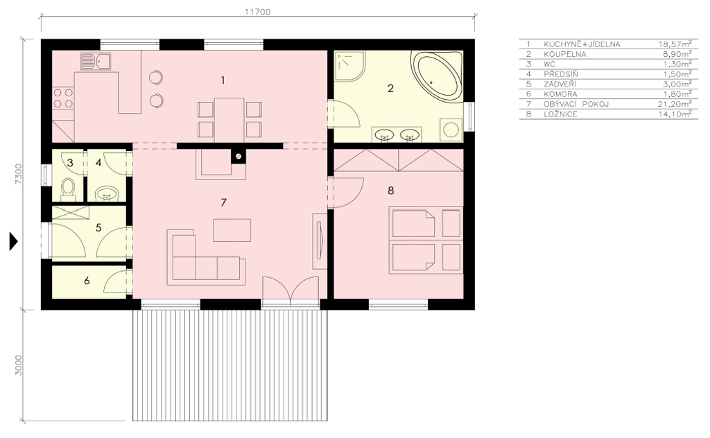 Cena za stavbu domu na klíč bez základové desky a DPH: 2.480.000,- Kč