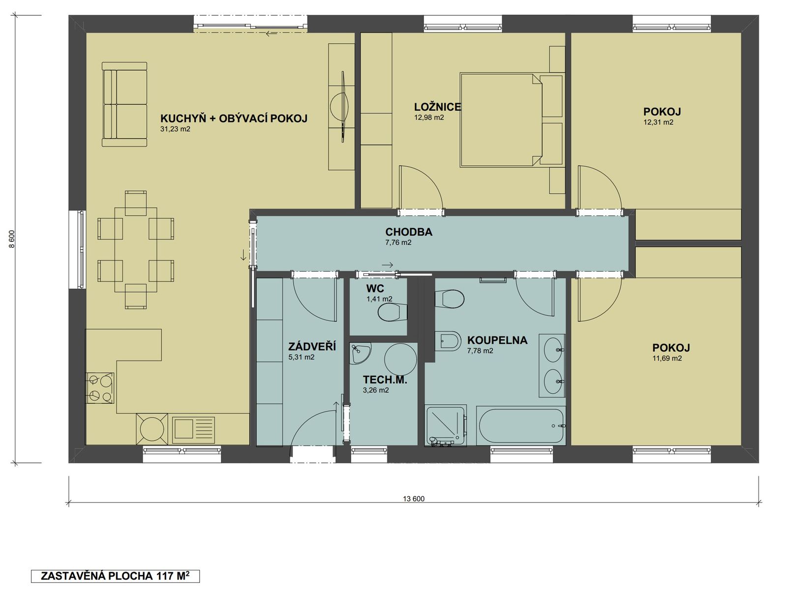Cena za stavbu domu na klíč bez základové desky a DPH: 3.744.000,- Kč