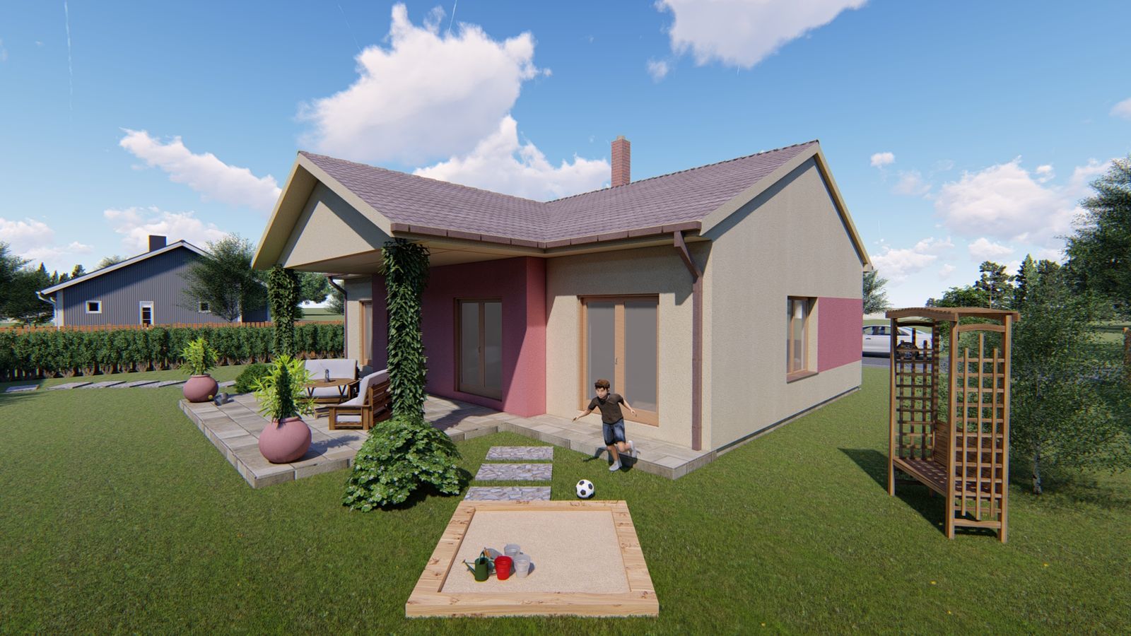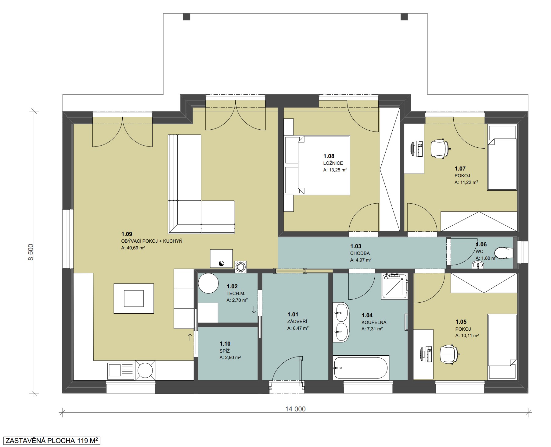 Zastavěná plocha: 122,5 m2 + terasa 17 m2