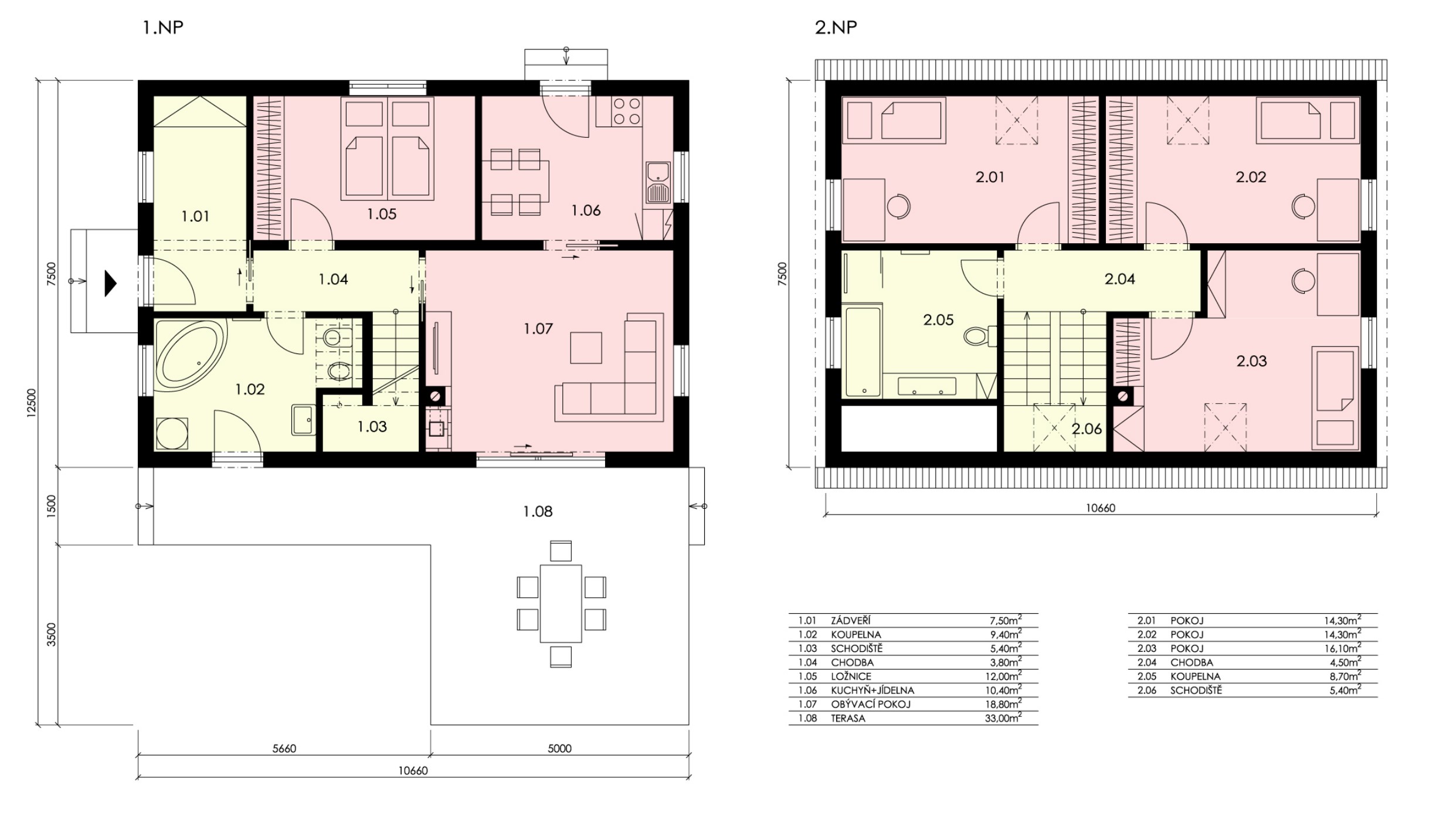 Zastavěná plocha: 80 + 80 m2 do patra