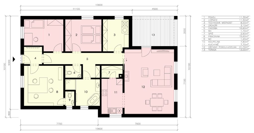 Užitná plocha celkem: 112,80 m2