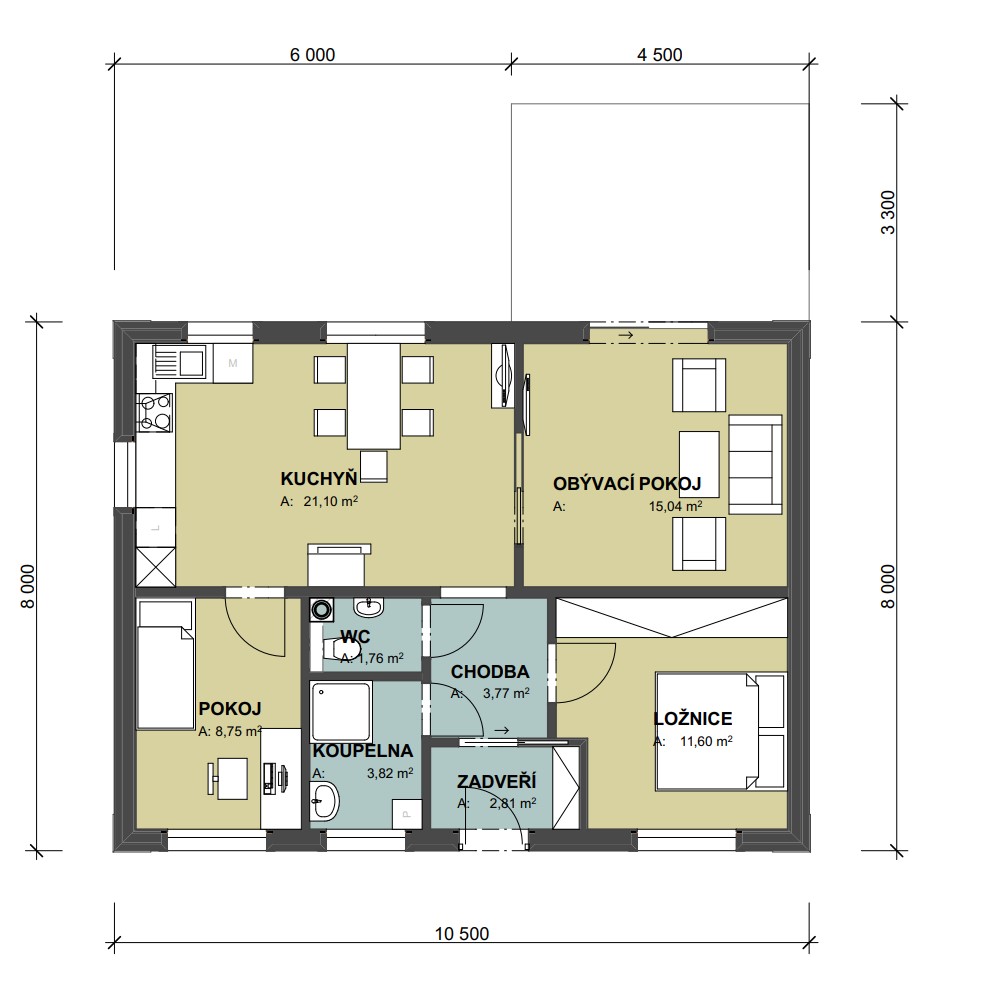 Cena za stavbu domu na klíč bez základové desky a DPH: 2.604.000,- Kč